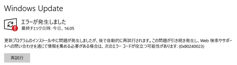 しかし、この後に現在ではサポートの終了している Microsoft Office Personal 2007をインストールすると 「更新プロプラムのチェック」のチェックでエラーが発生します。 0x80240023 Windows Update エラーとなり いくら「更新プロプラムのチェック」を繰り返しても改善されません。
