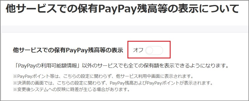 他サービスでの保有PayPay残高等の表示について