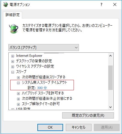→ バランス(推奨)→ プラン設定の編集→ 詳細な電源設定の変更